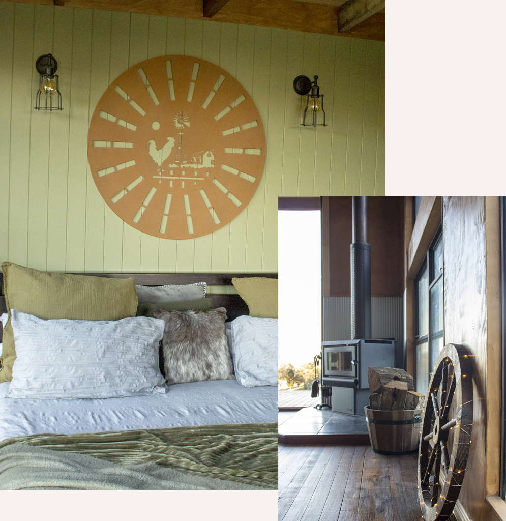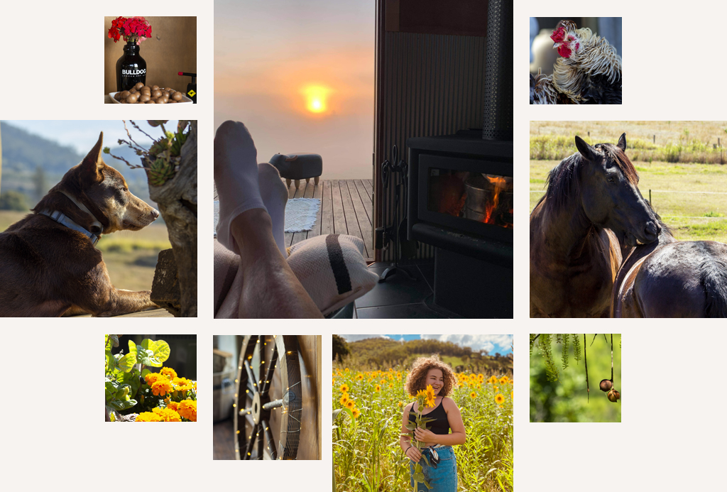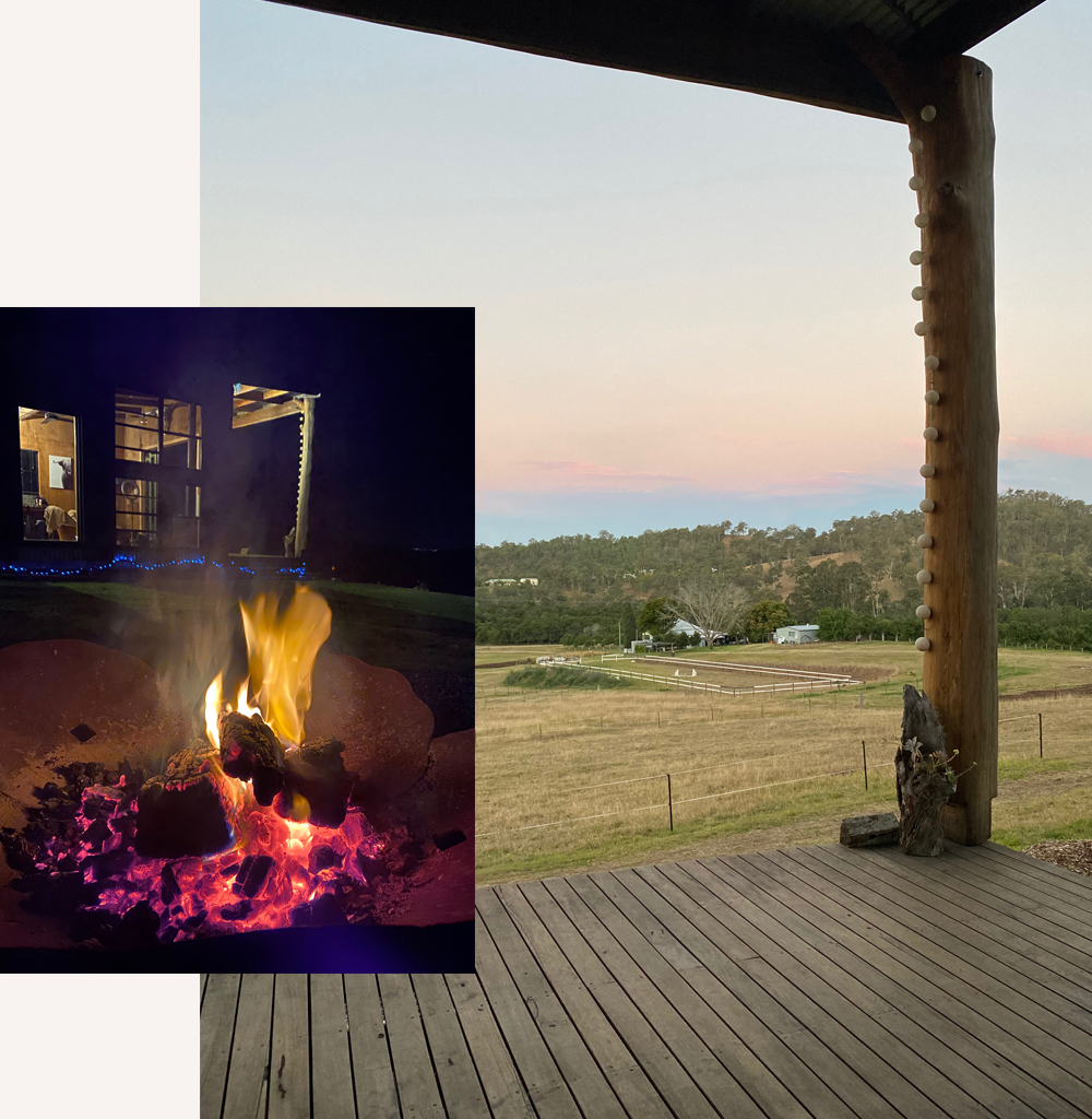 Warm yourself by the fireplace, sit by the outdoor firepit or on the deck taking in the magnificent scenery. You are welcome to byo or we also have a selection of hampers available to purchase. All produce/products are Australian and we try to support locally bred beef and cheese from Kenilworth. All fresh produce (Fruit and Veg) is either from our farm or another very local farm.